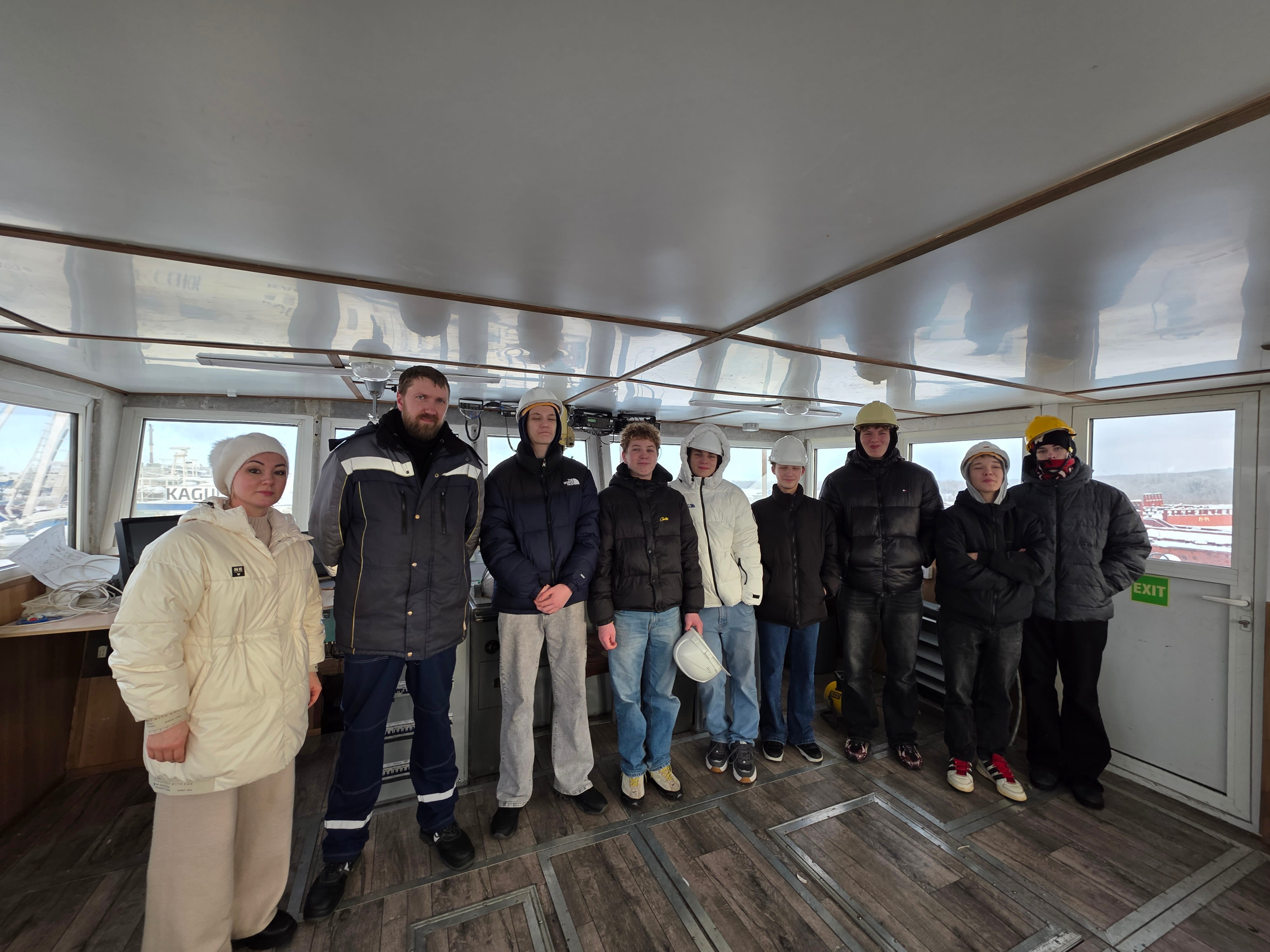 После осмотра территории завода, школьники поднялись на трехпалубный буксир: осмотрели машинное отделение, каюты моряков, побывали в ходовой рубке, где пообщались с настоящим капитаном. Алексей Ермолин много лет ходил по северным морям, управлял буксирами и доставлял грузы в самые разные уголки арктических регионов. Он рассказал ребятам об особенностях морских буксиров, специфике работы в море, делился своим опытом и особенностями флотской жизни в период навигации. Мальчишки расспрашивали о быте и увлечениях моряков, о том, как они проводят время в рейсах, когда не заняты работой.